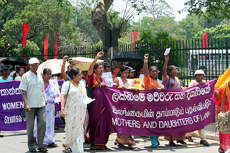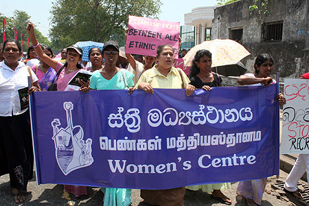After the symposium, the protest march which was attended by more than 2000 women activists began from Victoria Park, proceeded along Alexandra Road and culminated at the Lipton Circle, where a demonstration and picket was held. Sinhala, Tamil and Muslim women from all parts of the country attended this march.