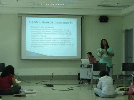The 2nd Regional Training Institute for young feminists from South and South East Asia was organized by Development Alternatives with Women for a New Era (DAWN), from the 16th – 22nd April 2009 in Manila, Philippines. Kumudini Samuel and Nilusha Hemasiri from WMC participated. Kumudini Samuel who was the DAWN South Asia coordinator participated as a resource person at the training.