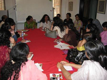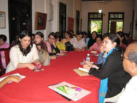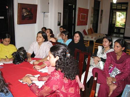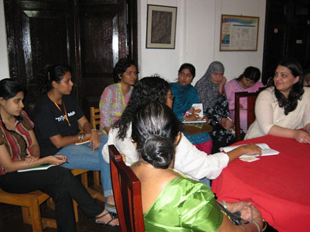A delegation of 25 women members from Rural Support Programmes Network in Pakistan, visited Women and Media Collective in November this year, to meet with its staff for a friendly dialogue and exchange of ideas on feminist activism in Sri Lanka. The meeting was facilitated by the Ministry of Women Affairs. The Pakistani women delegation accompanied by local Women’s Ministry representatives, met with the members of WMC to share ideas and experiences about using the feminist perspective framework in their engagement with policy makers, communities at the grass root level and the general public.